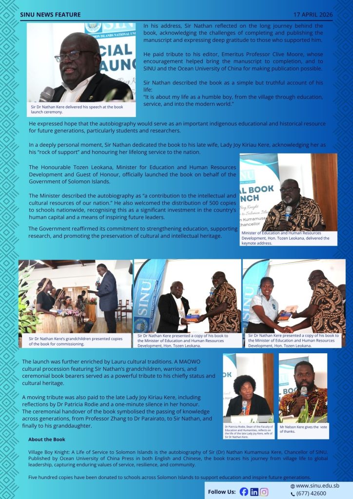 β¨ππΆπ΄π΅πΉπΆπ΄π΅π πΌπ³ ππ΅π² πͺπ²π²πΈβ¨ SINU marks a historic milestone with the launch of Village Boy Knight, celebrating the inspiring life and legacy of Sir Dr Nathan Kumamusa Kere.