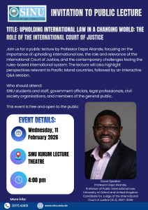 Solomon Islands National University (SINU) warmly invites students, staff, stakeholders, and members of the public to a Public Lecture by Professor Dapo Akande. ๐ Topic:Upholding ...