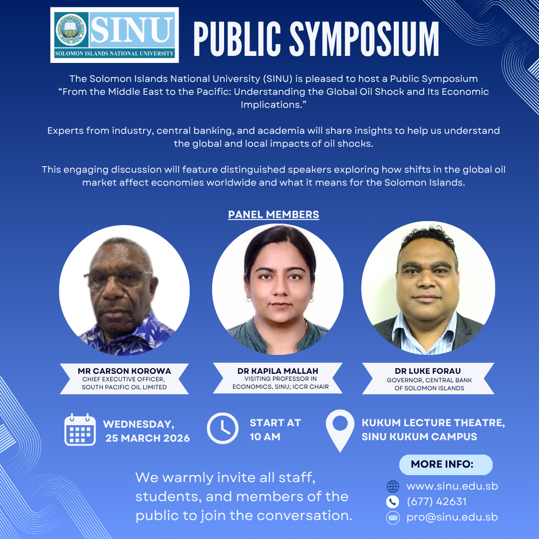 Press Release Friday, 20 March 2026 The Solomon Islands National University (SINU) on Wednesday welcomed a visiting delegation from Liaocheng University in China, with which SINU recently signed a Memorandum of Understanding. According to SINU Vice-Chancellor, Professor Transform Aqorau, the Read More …