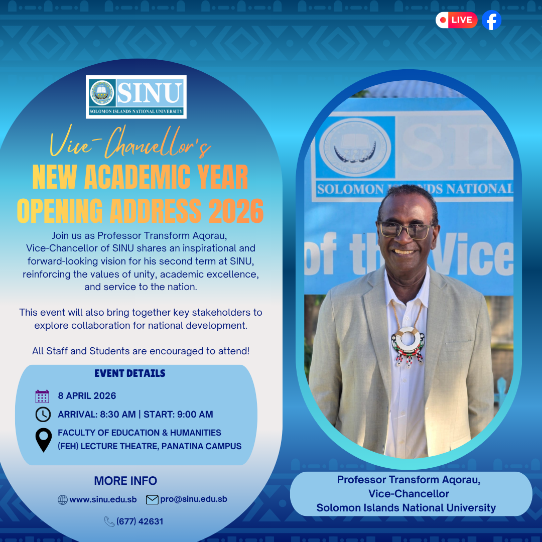 Join Solomon Islands National University for an engaging and inspiring address by Professor Transform Aqorau, Vice-Chancellor of SINU. In this special event, the Vice-Chancellor will share his vision for his second term, highlighting unity, academic excellence, and SINUโs continued commitment Read More …