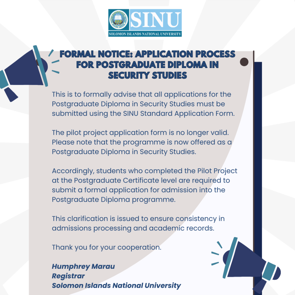 Formal Notice: Application Process for Postgraduate Diploma in Security Studies