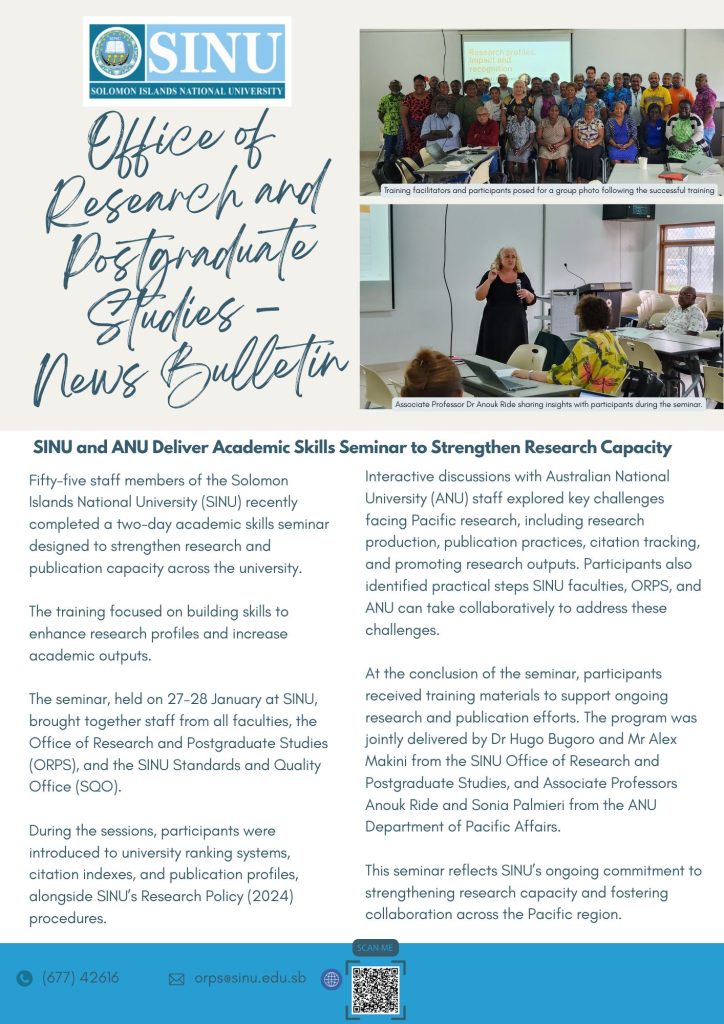 SINU and ANU Deliver Academic Skills Seminar to Strengthen Research Capacity