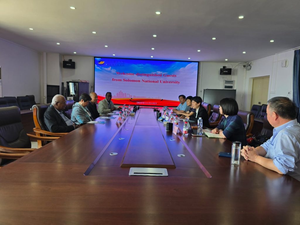 A high-level delegation from the Solomon Islands National University (SINU), led by Pro-Chancellor & Council Chair Dr. Morgan Wairiu and Vice-Chancellor Dr. Transform Aqorau, held a successful meeting with the College of Ocean and Meteorology at Guangdong Ocean University (GDOU) on Tuesday 13 November.